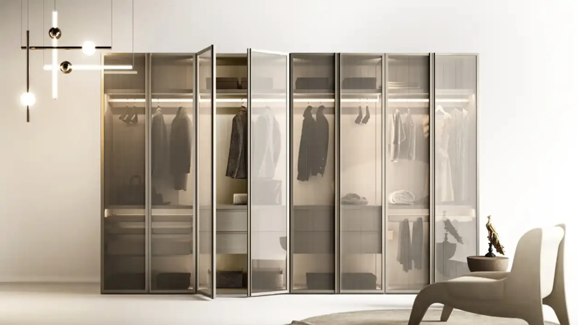 Cerchi un guardaroba in vetro? Clicca e scopri armadi cabine armadio con ante battenti di Moretti Compact Giorno Notte.