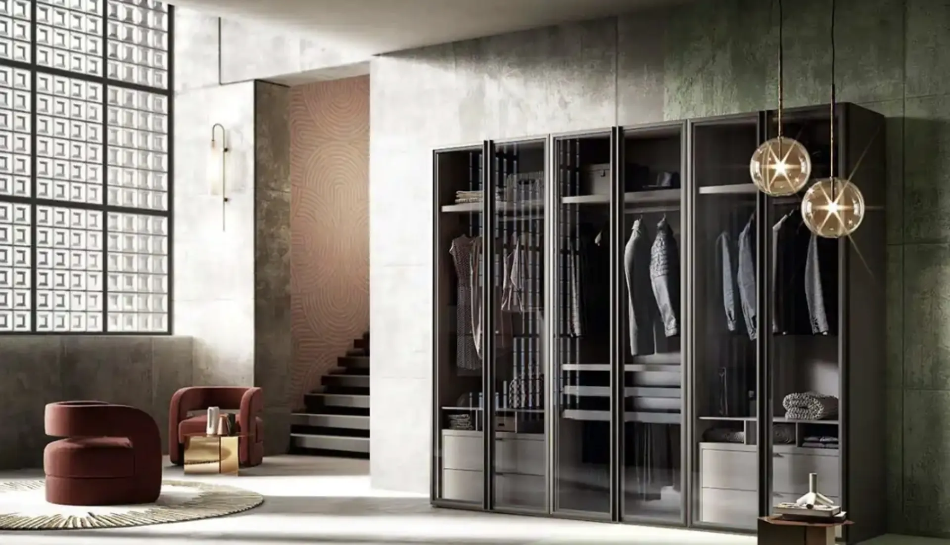 Se desideri armadiature a muro con ante battenti, clicca e scopri l'armadio Foehn B370 di Moretti Compact Giorno Notte in vetro.