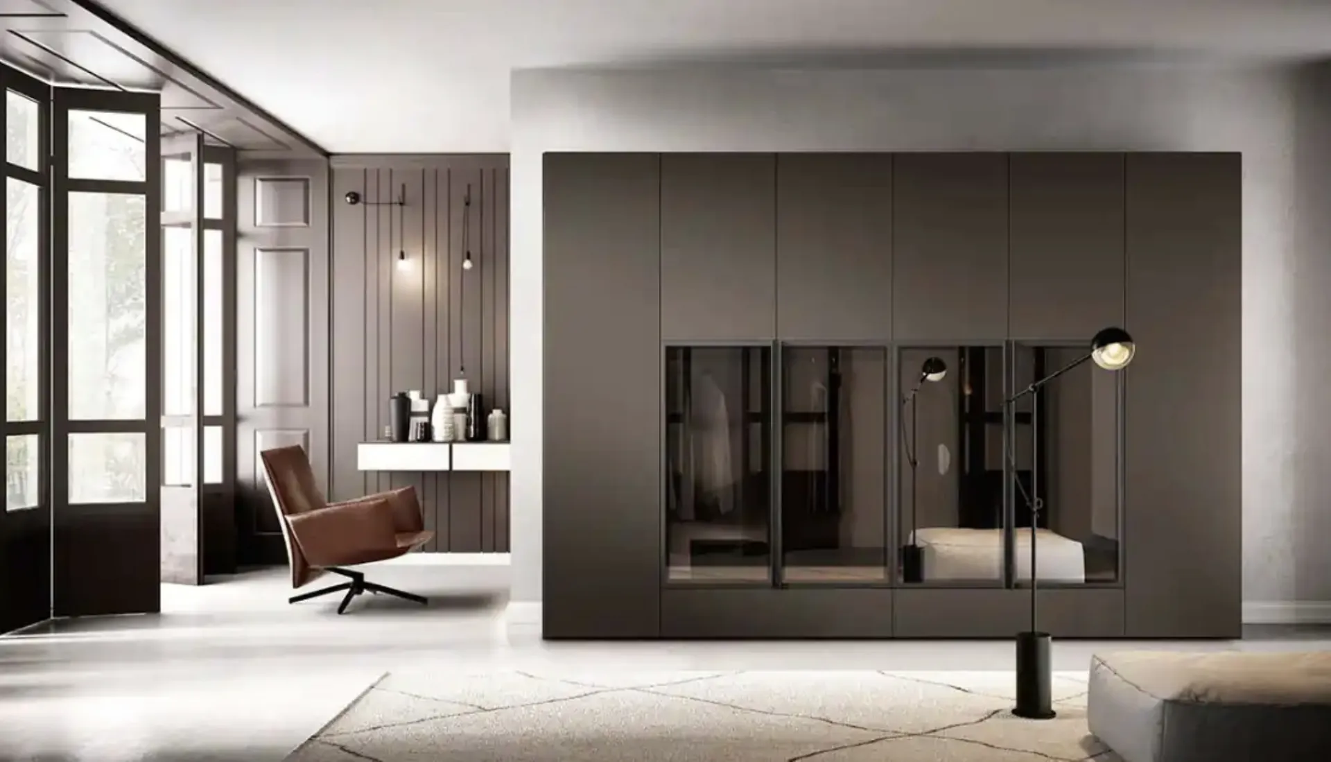 Se desideri una zona notte arredata con gusto, scegli l'armadio Libeccio e Fohen B372 con ante battenti di Moretti Compact Giorno Notte!
