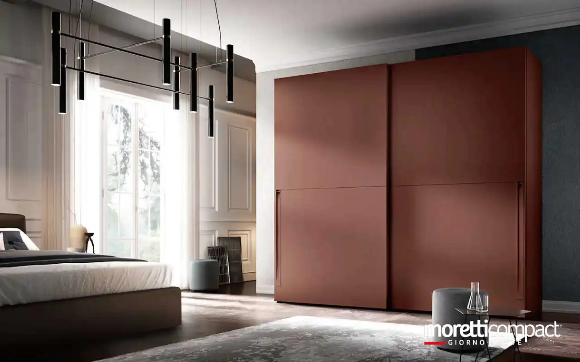 Cerchi un'armadiatura in laccato opaco? Clicca e scopri armadi a muro con ante scorrevoli di Moretti Compact Giorno Notte.
