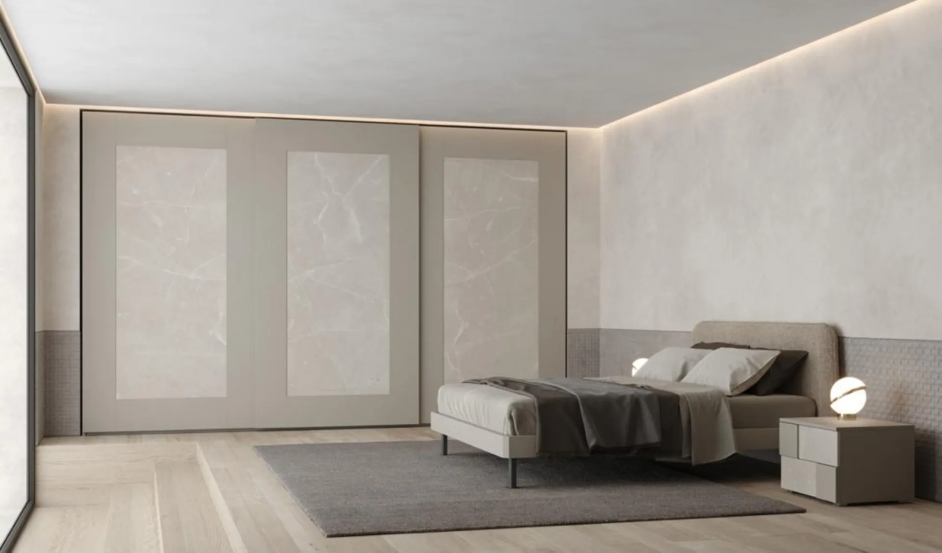 Modello Window con ante scorrevoli in melaminico ideale per una camera da letto dai richiami design: scopri le soluzioni a muro
