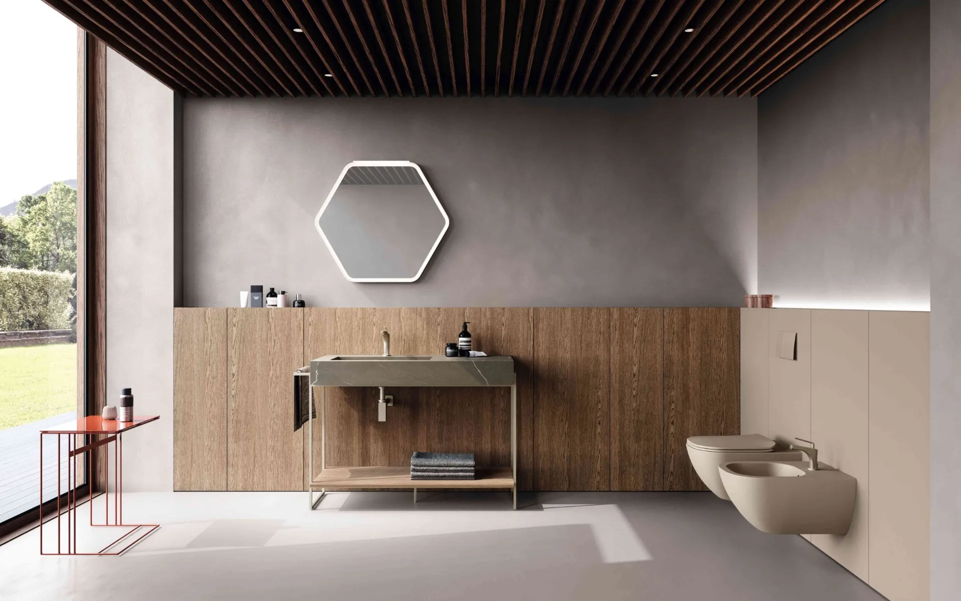 mobili bagno a terra M2 System 241 di Baxar: scopri l'Arredo Bagno in legno design e arreda la stanza del benessere.