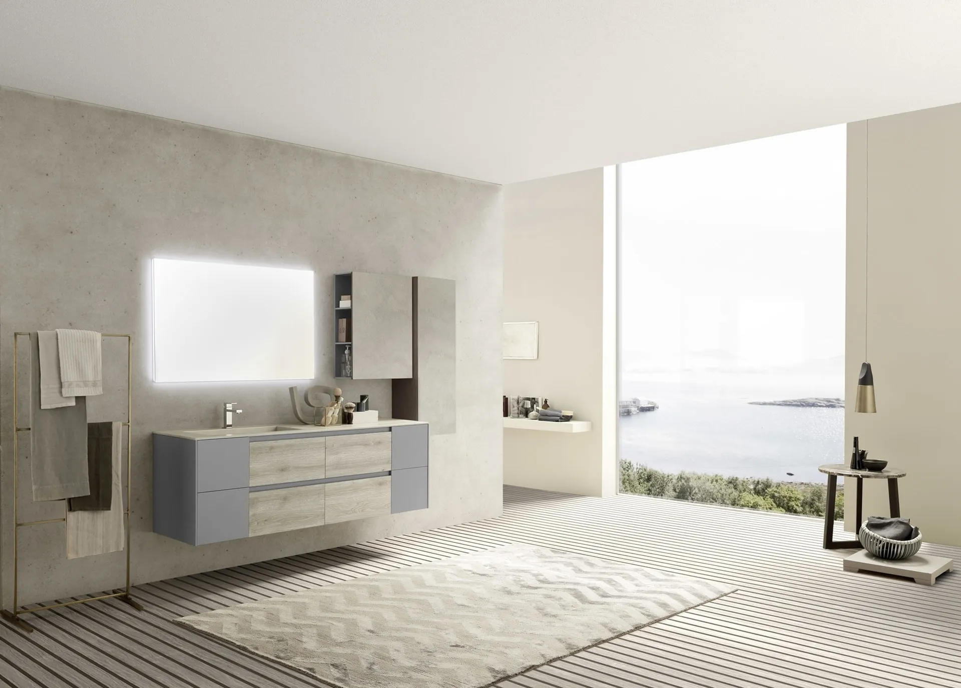 Scopri la nostra collezione di Arredo Bagno moderno e mobili bagno sospesi in melaminico, come il modello M2 System C210