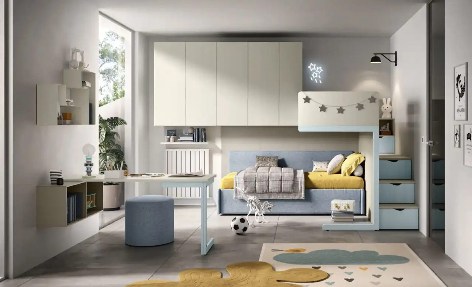 Per progettare al meglio le Camerette, Moretti Compact Camerette rende disponibili progetti articolati e polifunzionali: sono numerose le attività che i tuoi bambini svolgono lì. Il noto brand propone diverse soluzioni moderne, in questo modo la cameretta è un ambiente dove i piccoli saranno contenti di crescere e riposare. Con la Cameretta K118 di Moretti Compact Camerette renderai la stanza dei tuoi figli un interno davvero confortevole e sicuro, che li seguirà mentre crescono. Questa soluzione con finitura in melaminico, tra quelle a soppalco per bambini di Moretti Compact Camerette, accontenta le aspettative degli adulti e i gusti dei piccoli.