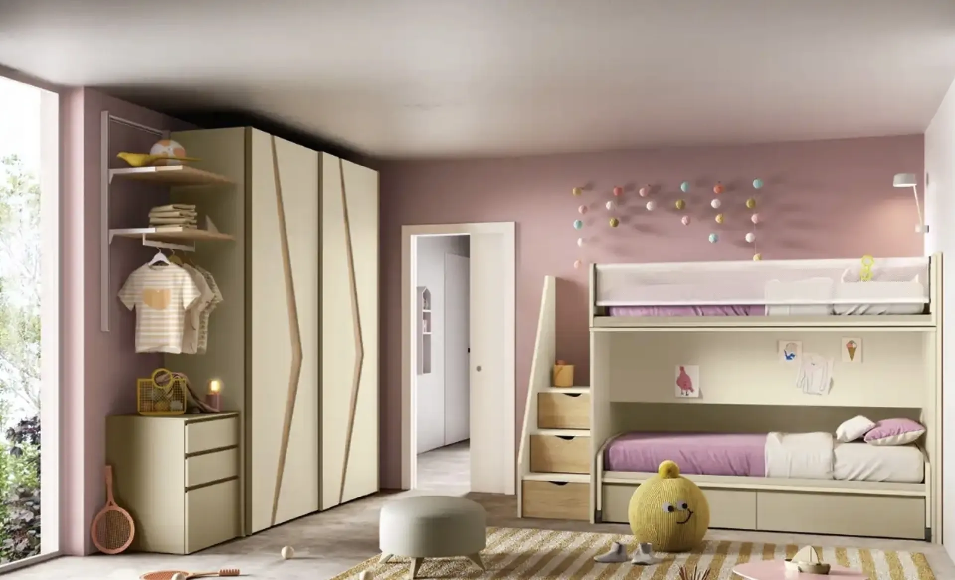 Camerette con letti a castello per bambine: scopri il modello in melaminico K125 di Moretti Compact Camerette per stanzette moderne.