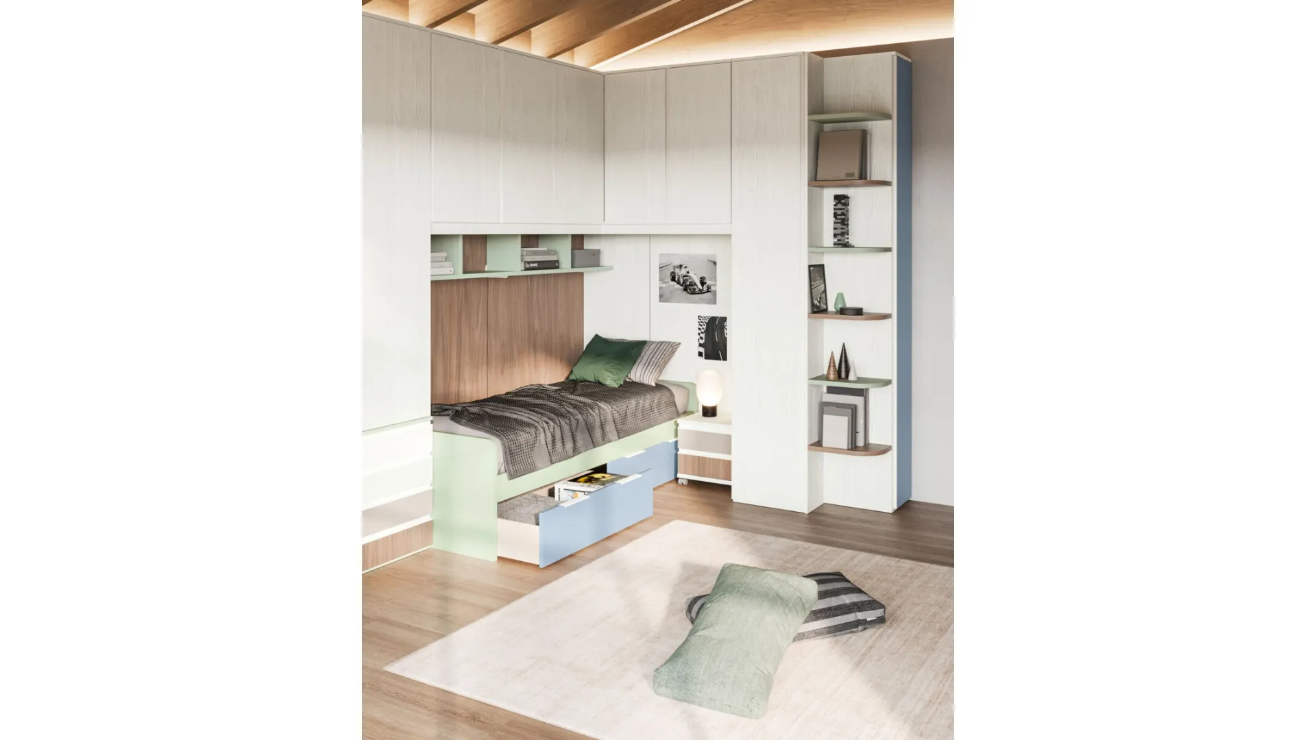 Con questa cameretta SMART Junior 28 San Martino Mobili, tra le soluzioni a ponte, potrai arredare stanze moderne per ragazzi.
