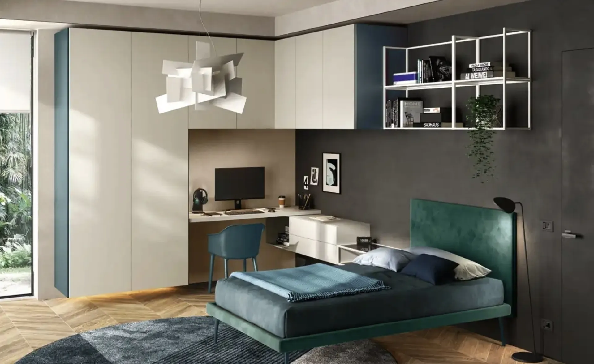 Con questa cameretta Y111 Moretti Compact Camerette, tra le soluzioni a ponte, potrai ammobiliare stanze moderne per ragazzi.