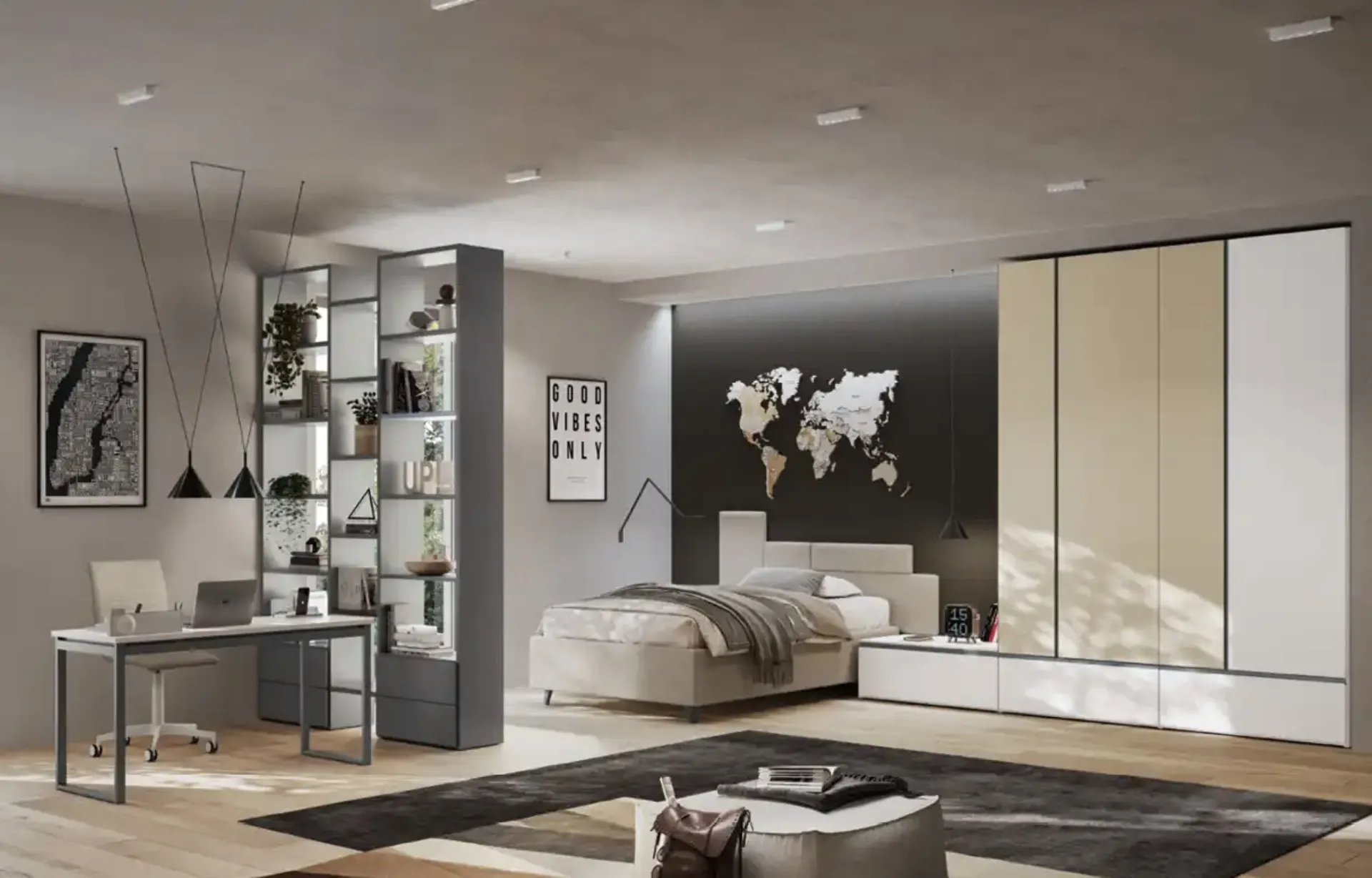 Arreda stanzette design con le Camerette componibili Moretti Compact Camerette! Il modello Y113 in laccato opaco è per ragazzi.