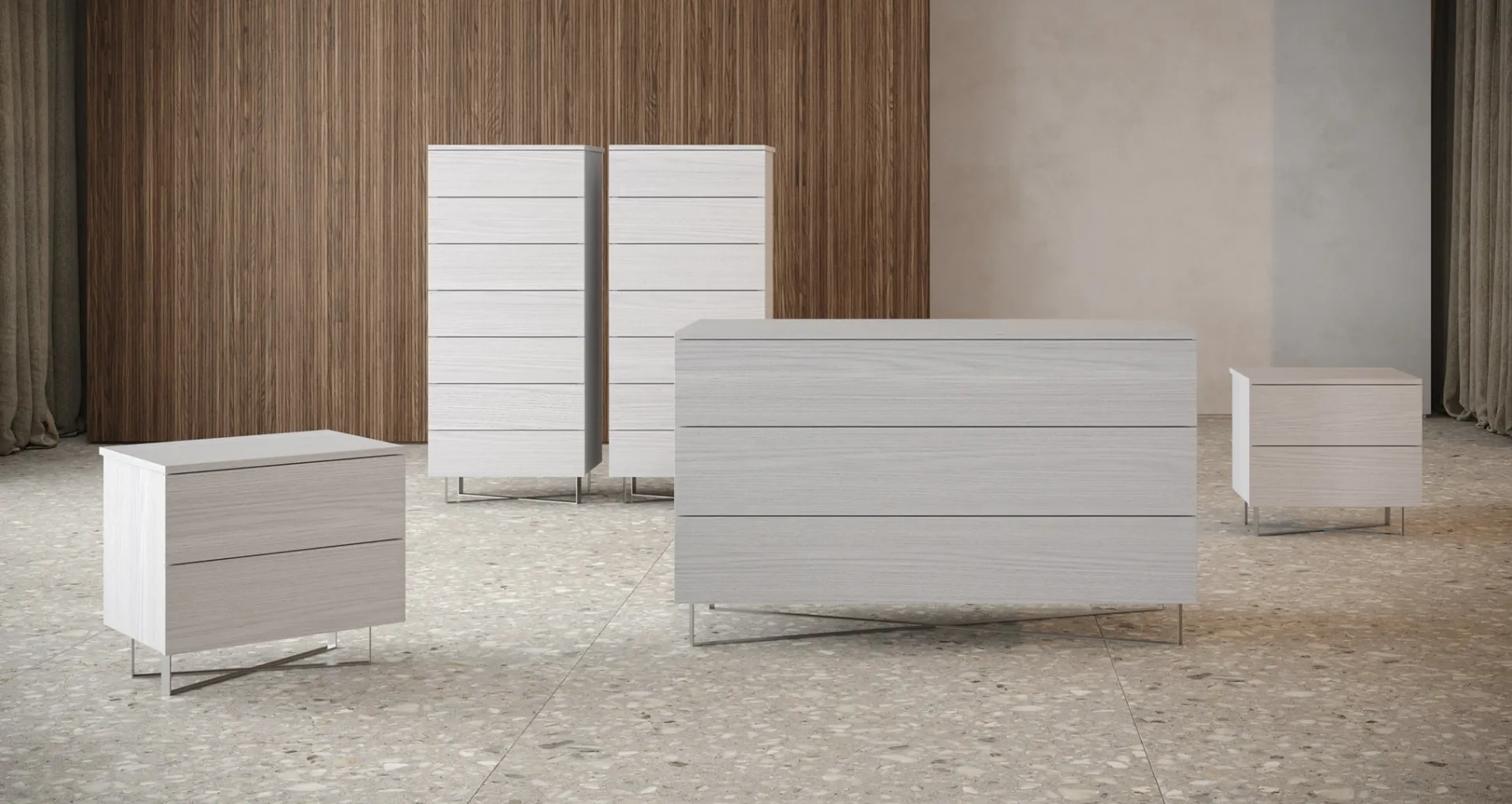 Vuoi progettare la zona notte con Comodini e cassettiere di Giessegi? Ecco qui il modello Cairo Gruppo Notte in melaminico per spazi moderni.