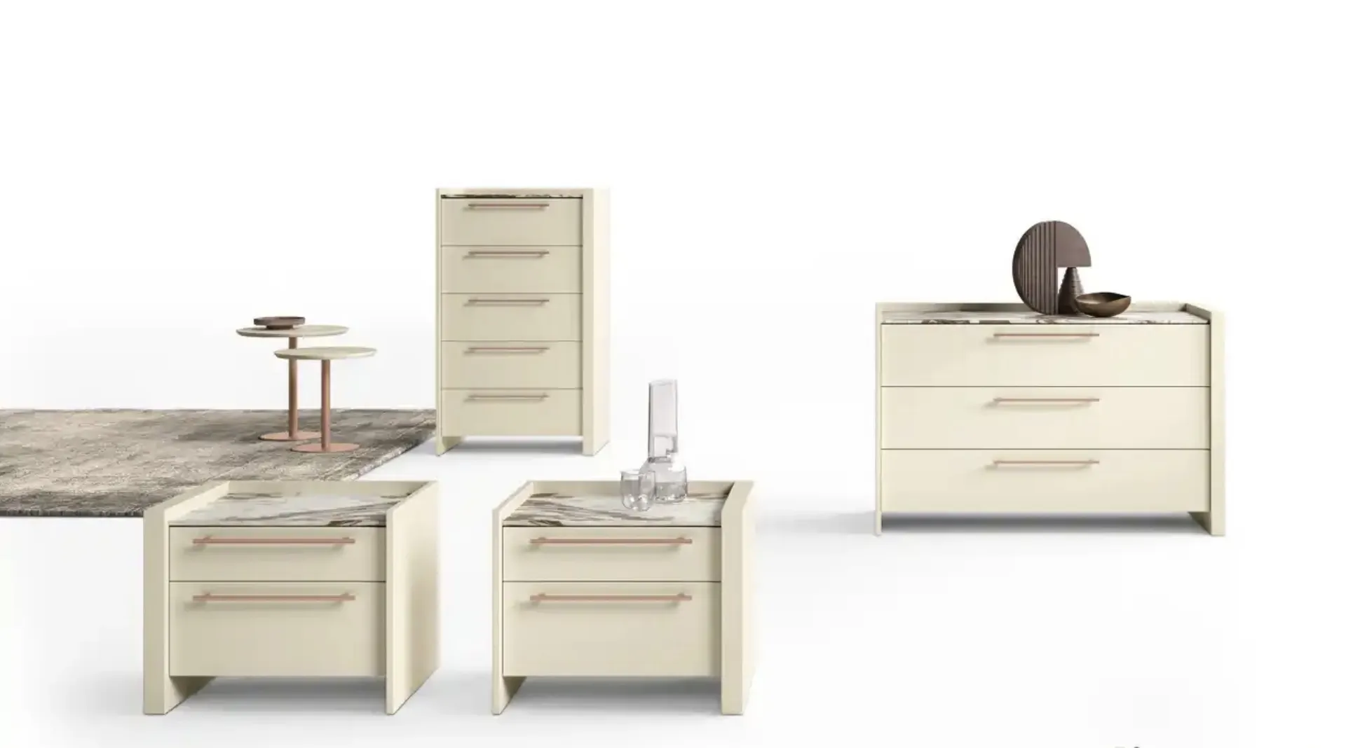 Una ricca gamma di cassettiere Moretti Compact Giorno Notte: i comodini moderni in melaminico, come Gruppo Notte Carry, sono tra le proposte più originali.