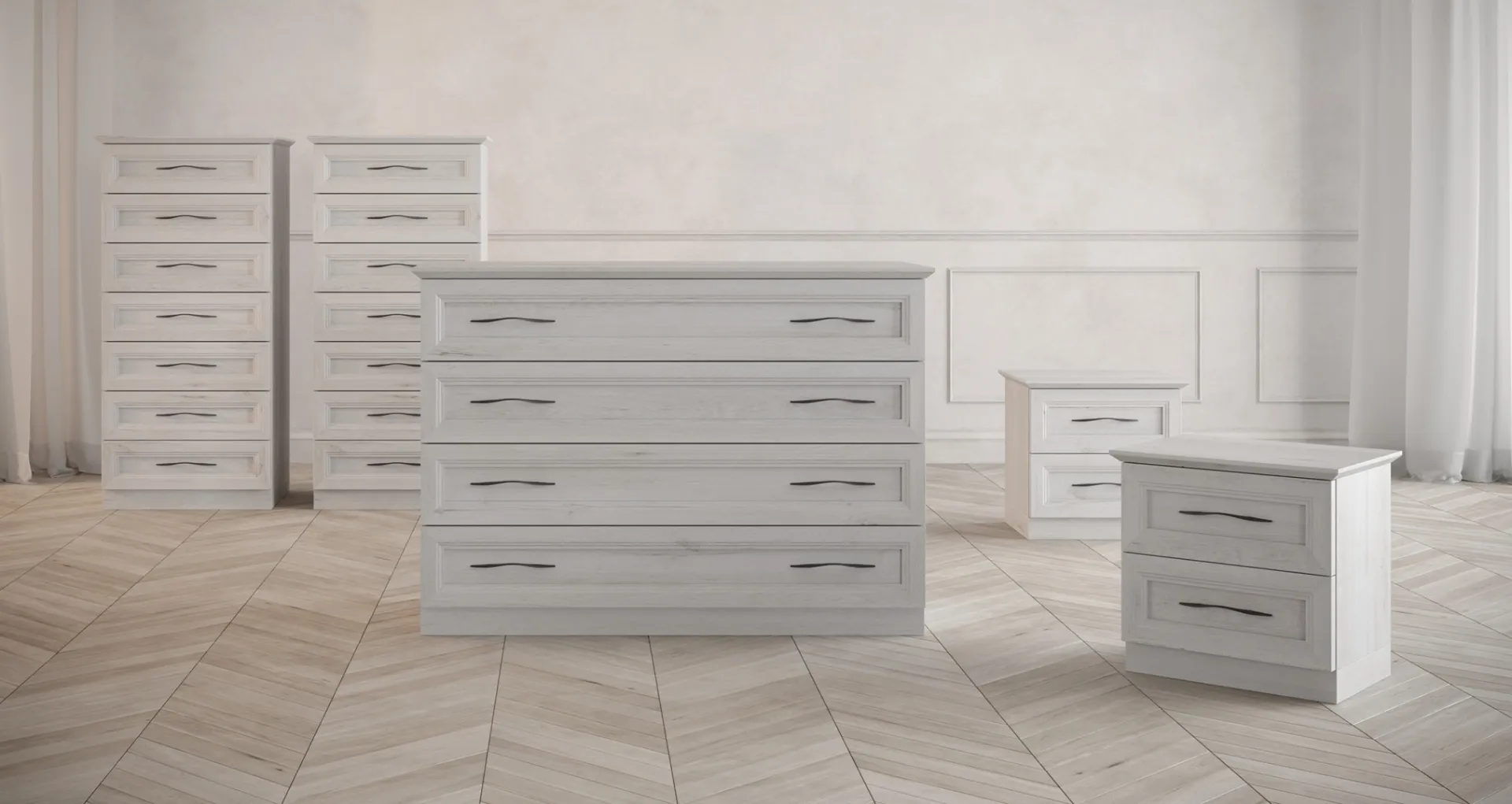 Vuoi progettare la camera da letto con Comodini e cassettiere di Giessegi? Ti presentiamo il modello Memory Gruppo Notte in melaminico per spazi classici.