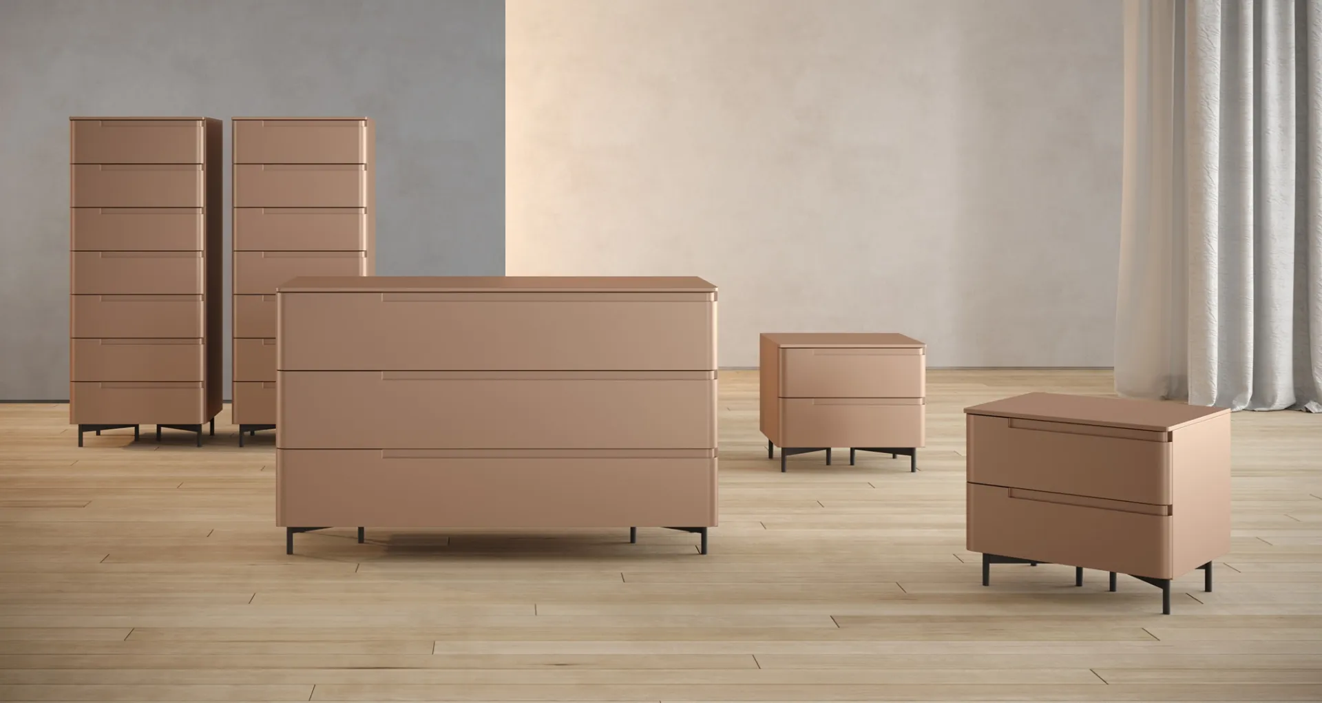 Un ricco catalogo di mobili con cassetti Giessegi: i comodini moderni in laccato opaco, come Torino Gruppo Notte, sono tra le soluzioni più originali.