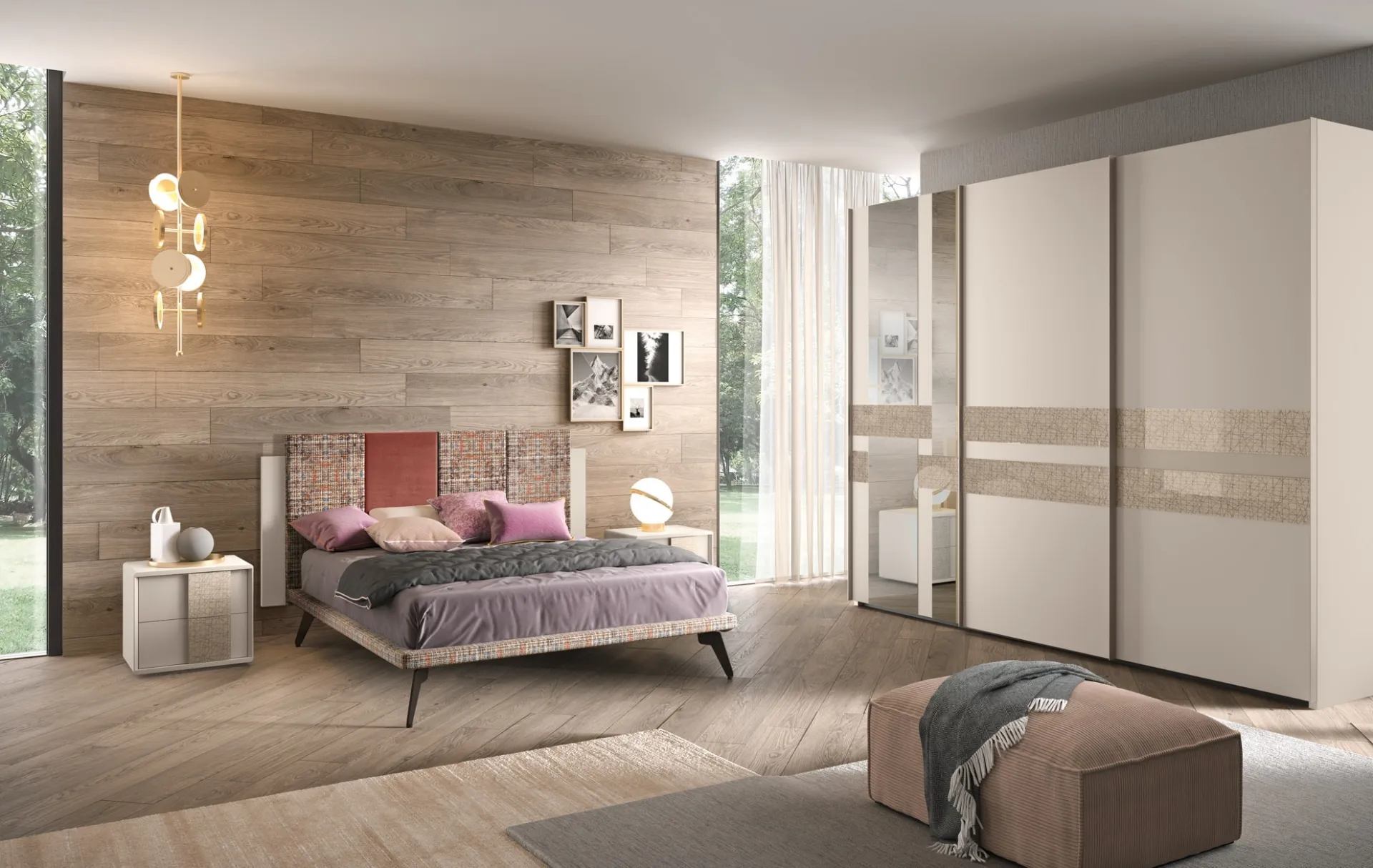 Se desideri letti matrimoniali imbottiti, ti presentiamo il modello Composizione 01 in tessuto per valorizzare la zona notte.