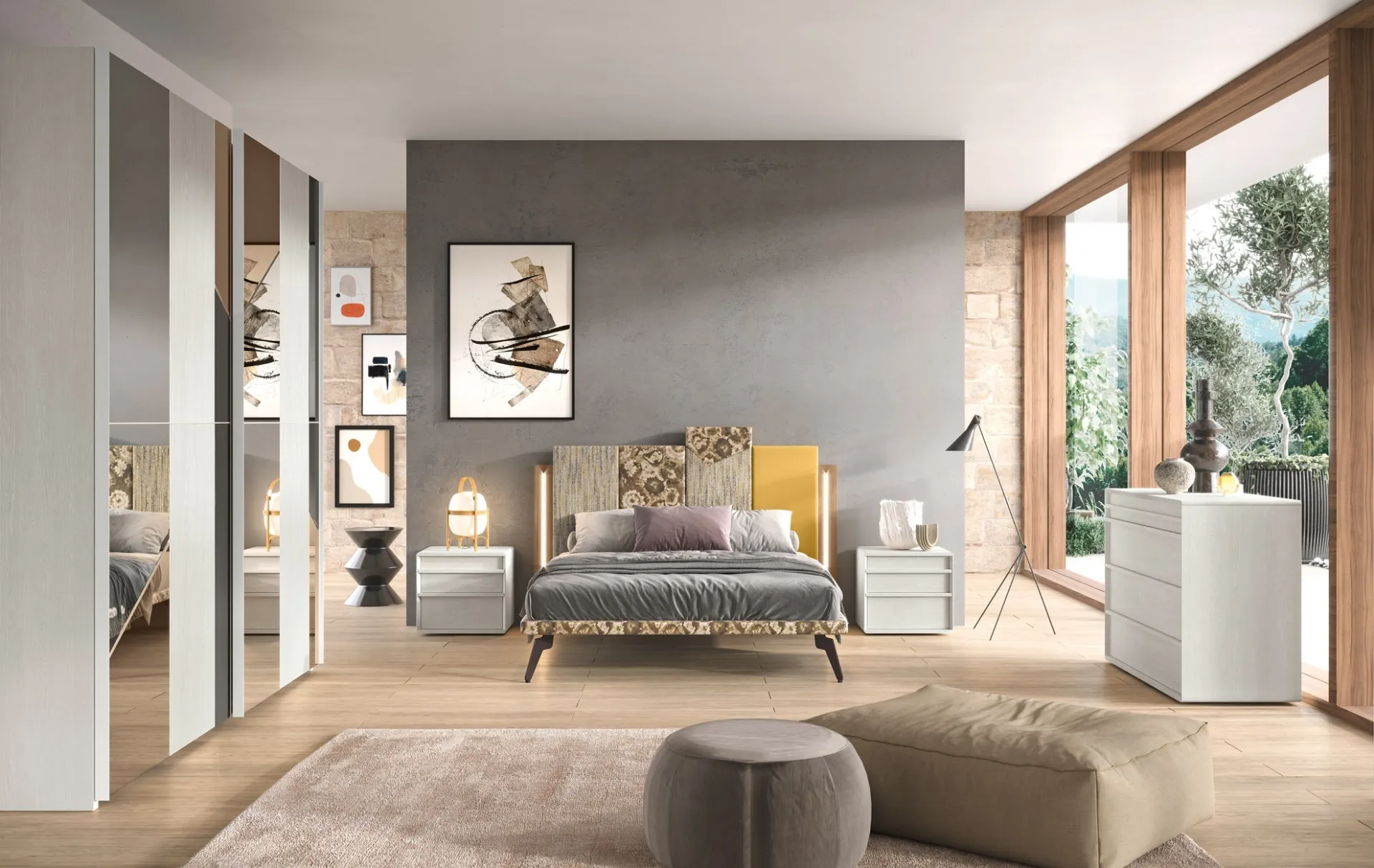 Il letto Composizione 03 in tessuto, tra i modelli imbottiti matrimoniali design di Corso 11, è pensato per garantirti il riposo migliore.