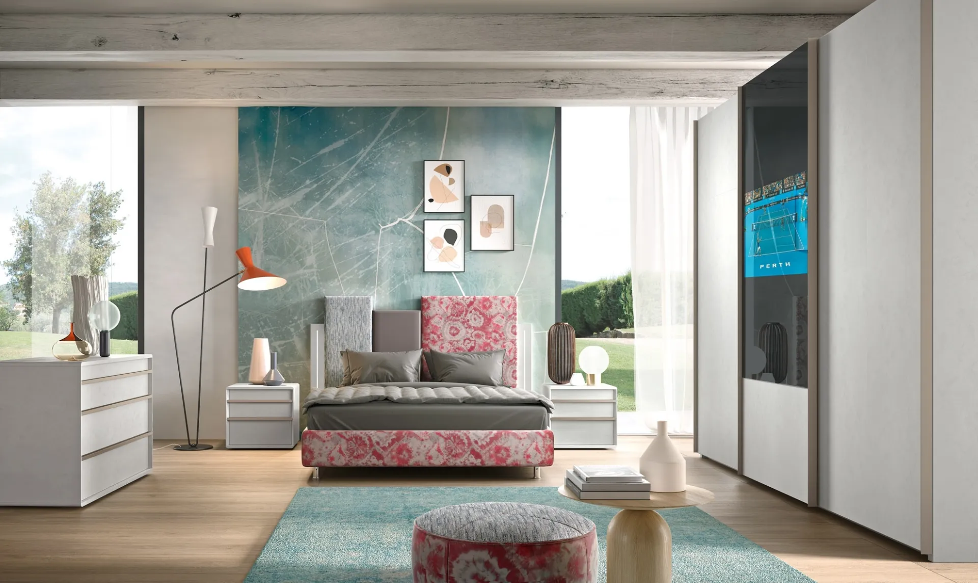 Vuoi progettare la zona notte? Eccoti il letto in tessuto Composizione 10 di Corso 11 per spazi design.