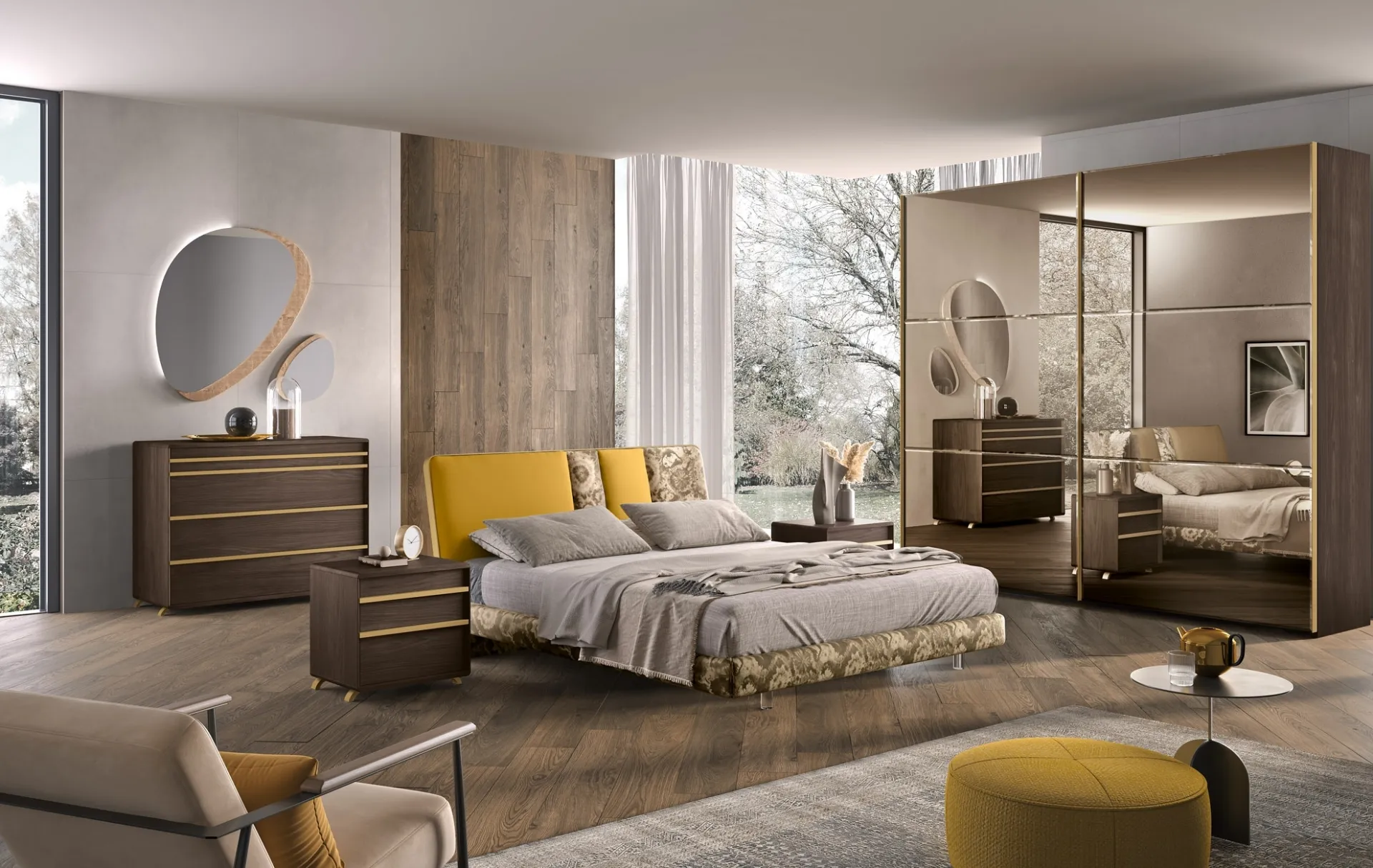 Il letto Composizione 48 in tessuto, tra i modelli imbottiti matrimoniali moderni di Corso 11, è perfetto per garantirti il relax totale.