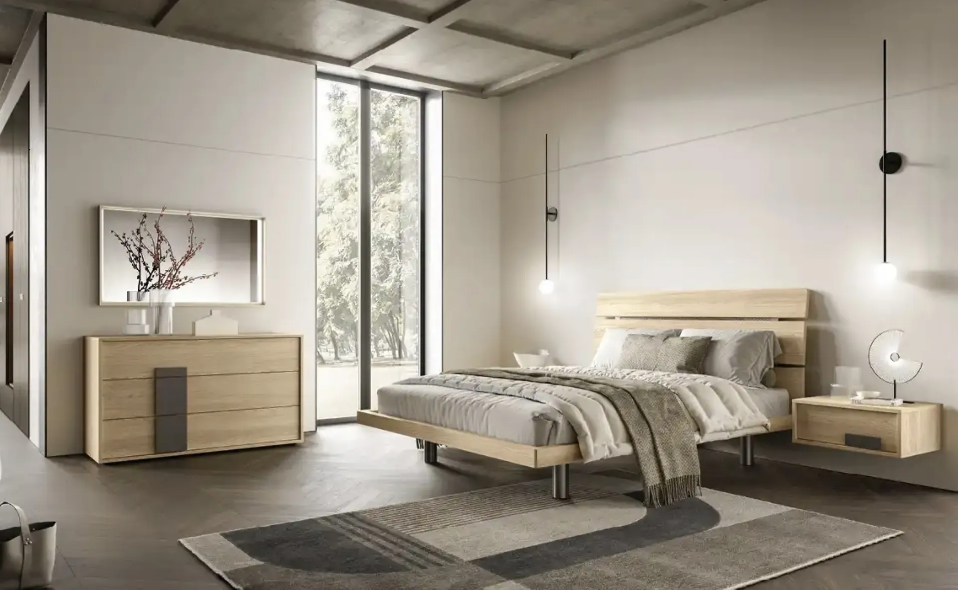 Se vuoi letti matrimoniali con testiera, ecco qui il modello Tree G14 in melaminico per arricchire la camera da letto.
