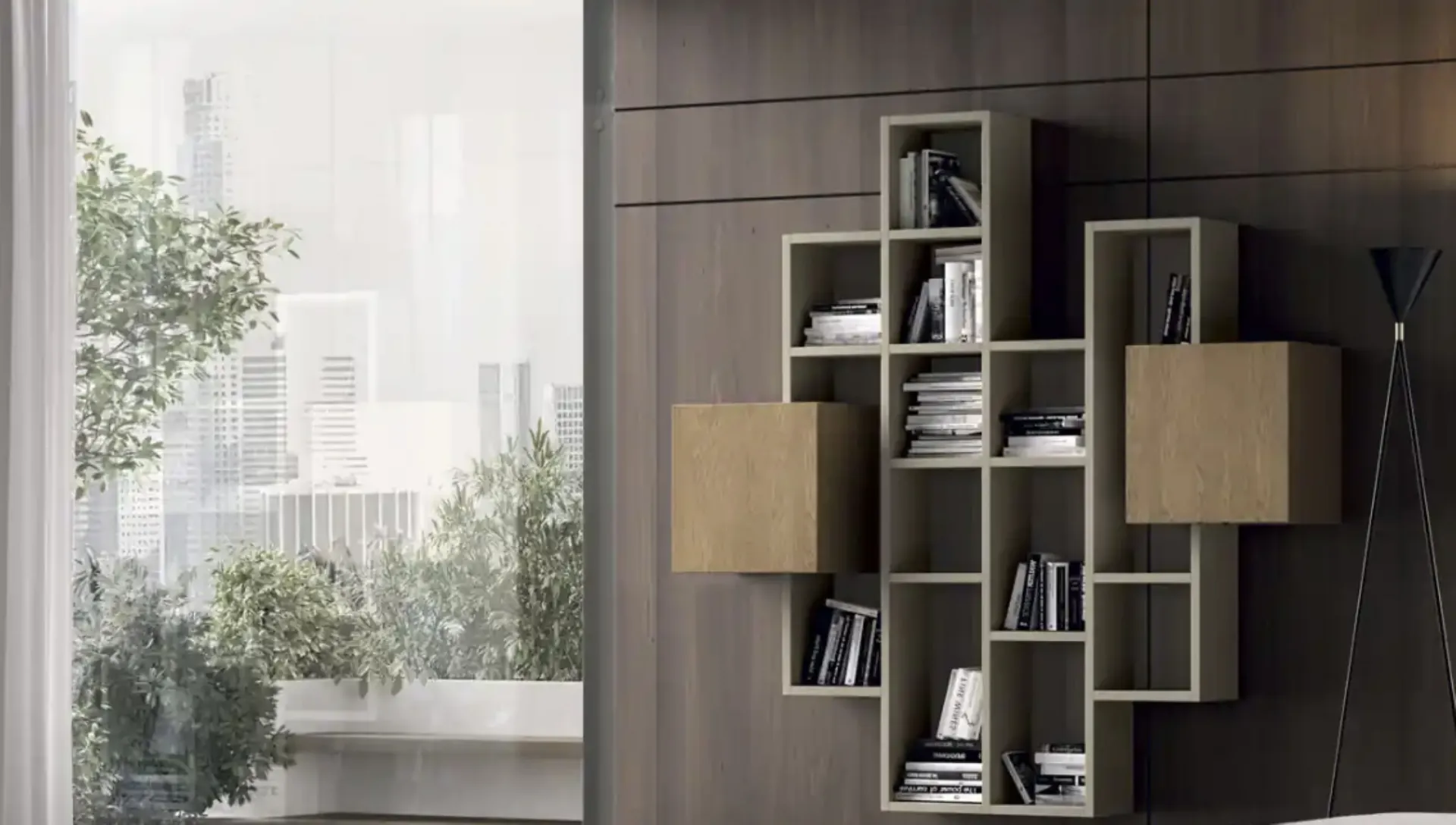 Libreria sospesa Kosmos KC123B di Moretti Compact Giorno Notte
