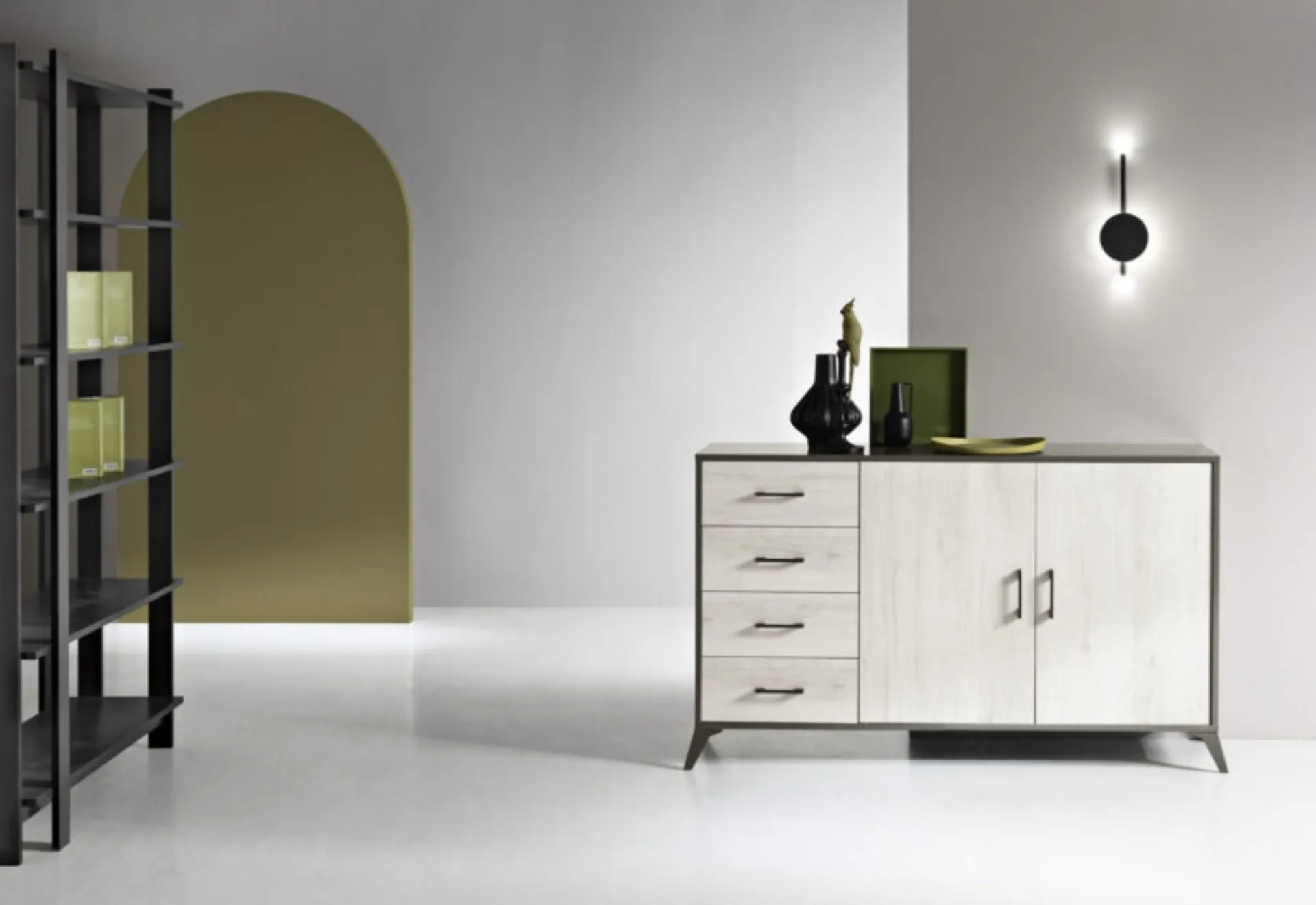 Arreda un living pratico e operativo con questa madia Ariel di Ikone Casa: scopri le più belle Madie in melaminico.