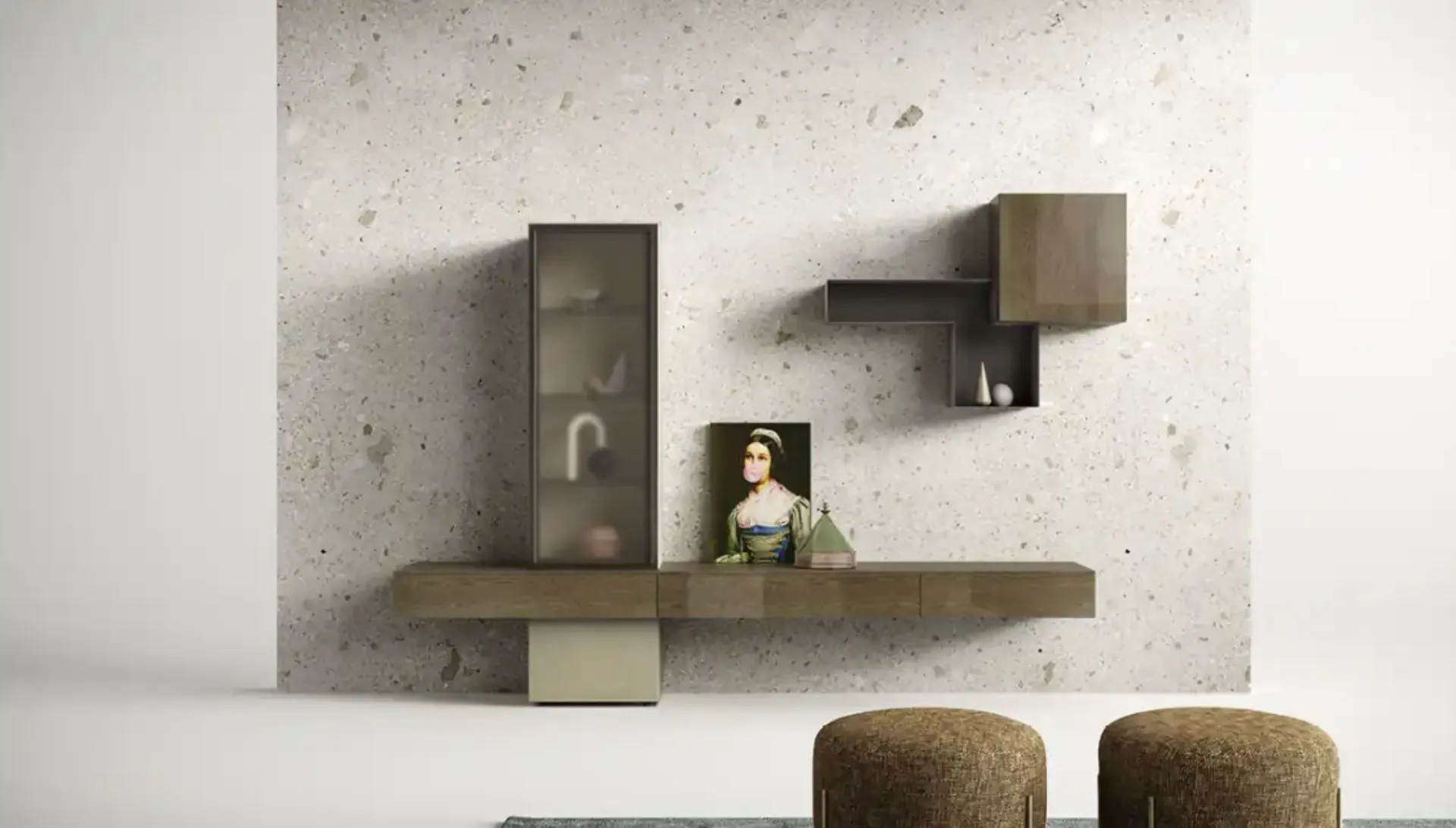 Vuoi arredare un soggiorno operativo e pratico? Ecco a te la parete attrezzata Kosmos KC112 Moretti Compact Giorno Notte dalle forme decise moderne.