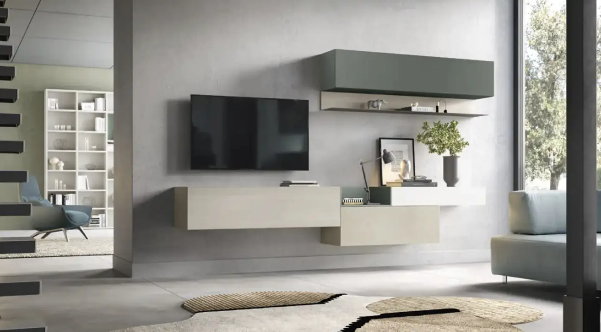 Parete Attrezzata sospesa Kosmos KF102 di Moretti Compact Giorno Notte