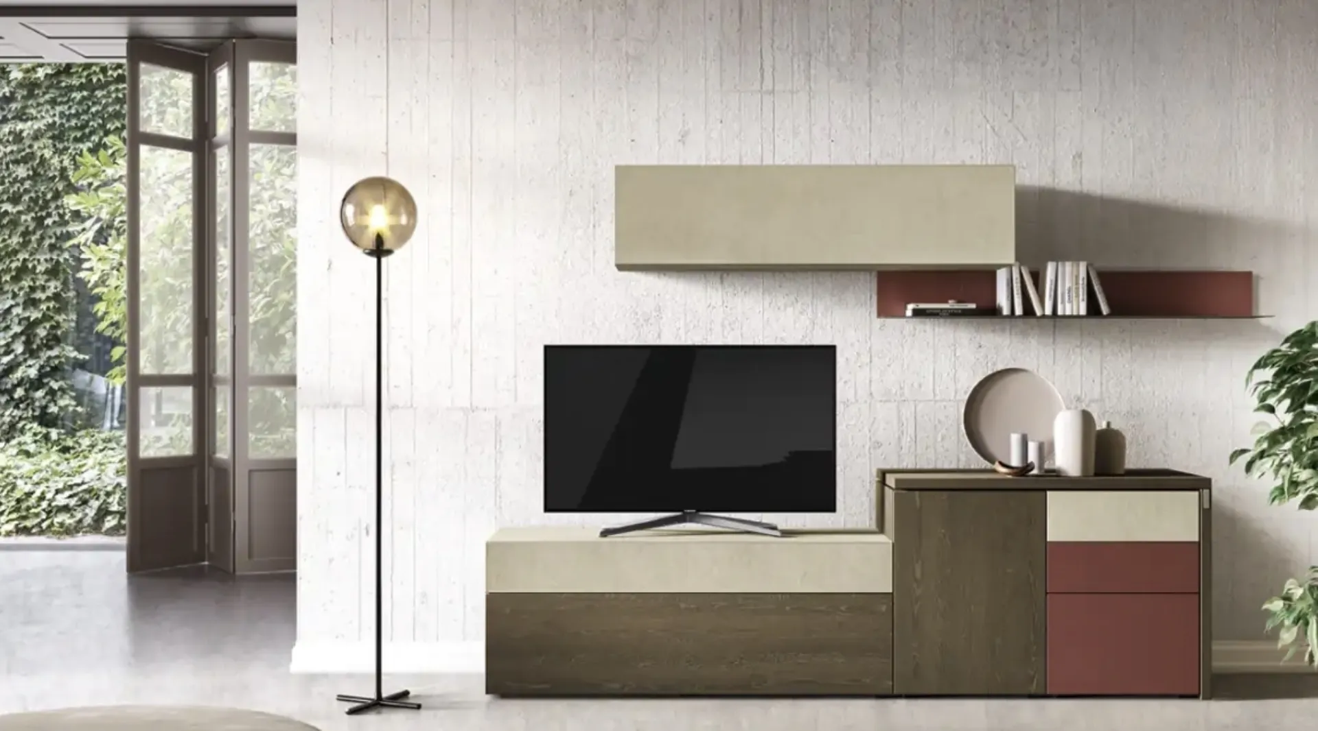 Se vuoi ultimare un soggiorno pratico e dinamico dalle linee moderne, ti presentiamo la parete attrezzata Kosmos KF107 Moretti Compact Giorno Notte.