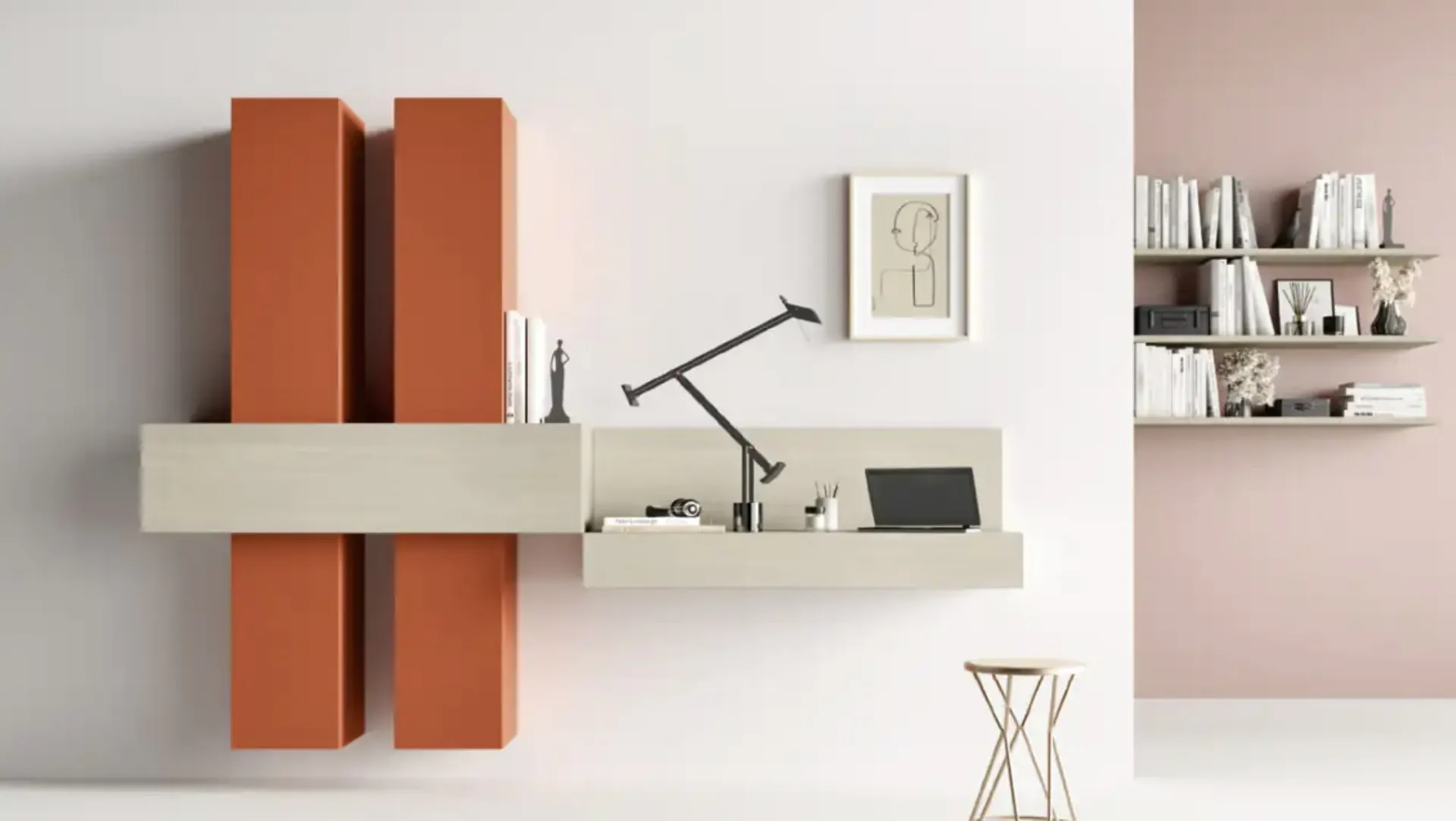 Parete Attrezzata sospesa Kosmos KF111 di Moretti Compact Giorno Notte