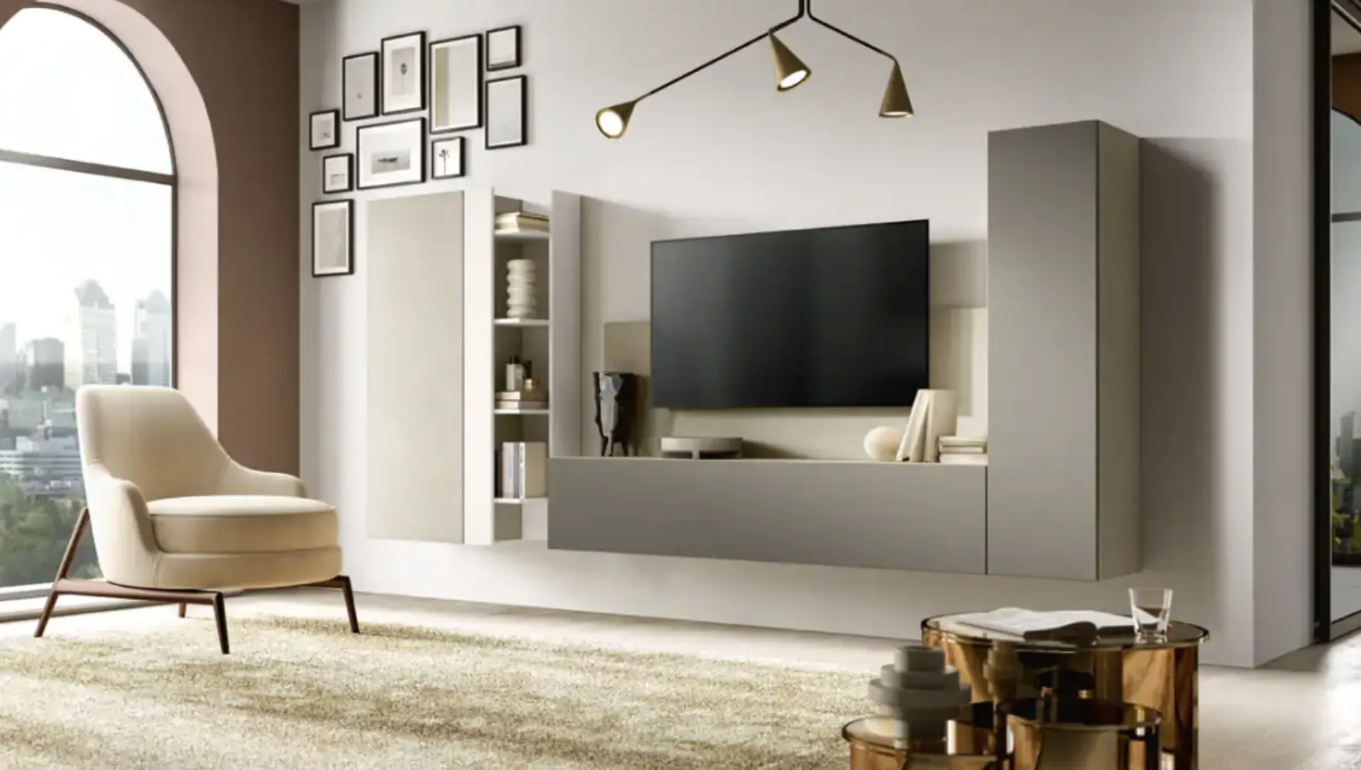 Parete Attrezzata sospesa Kosmos KF123 di Moretti Compact Giorno Notte