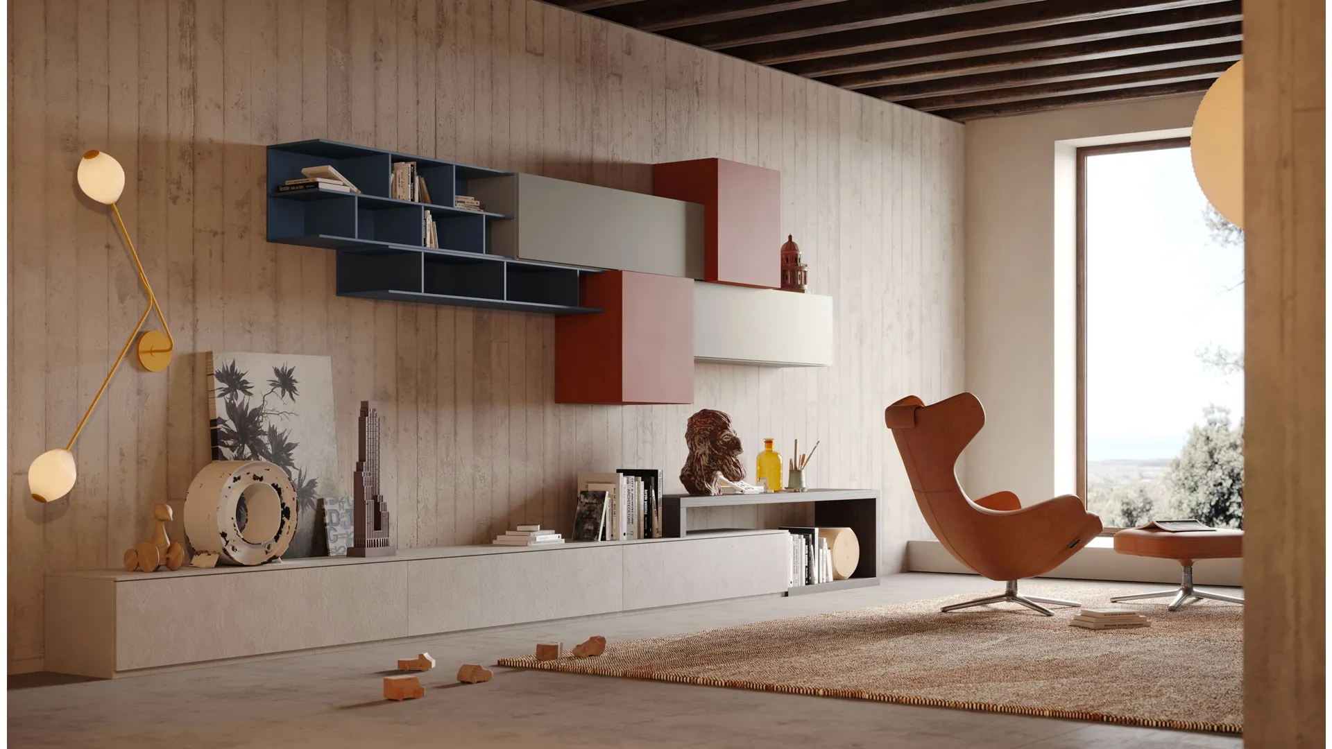 Tra le Pareti Attrezzate moderne Giessegi ecco il modello Living LV723 Materiale