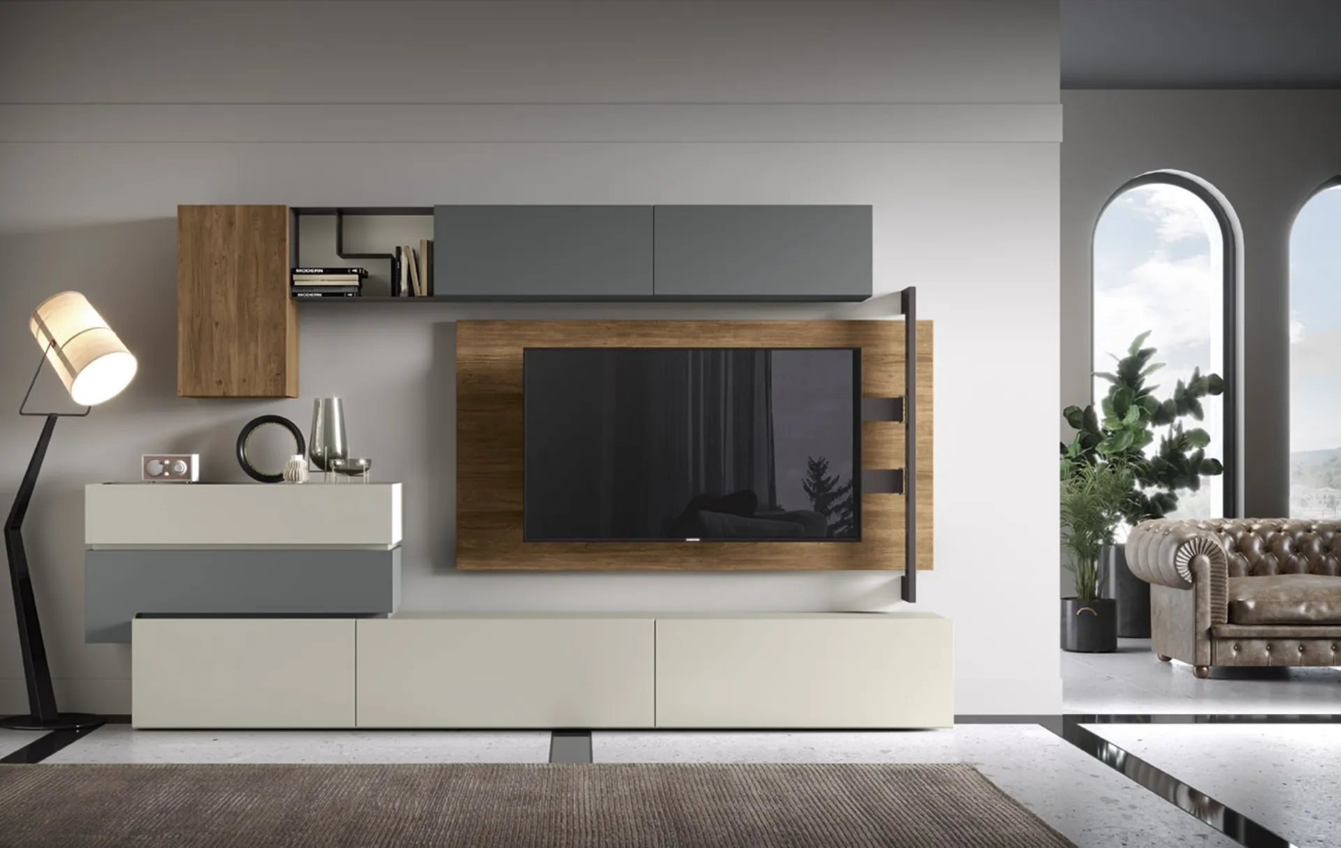 Questa parete attrezzata è una delle soluzioni della marca e ti permetterà di arredare il living seguendo le più particolari problematiche abitative. Attraverso un gioco dinamico di accostamenti fra elementi a giorno o vani chiusi, le Pareti Attrezzate moderne arredano il living usufruendo al meglio di ogni spazio. Le Pareti Attrezzate hanno conquistato un posto importante nella zona giorno delle nostre case: sono mobili multifunzionali e salvaspazio sempre realizzabili su misura per te.