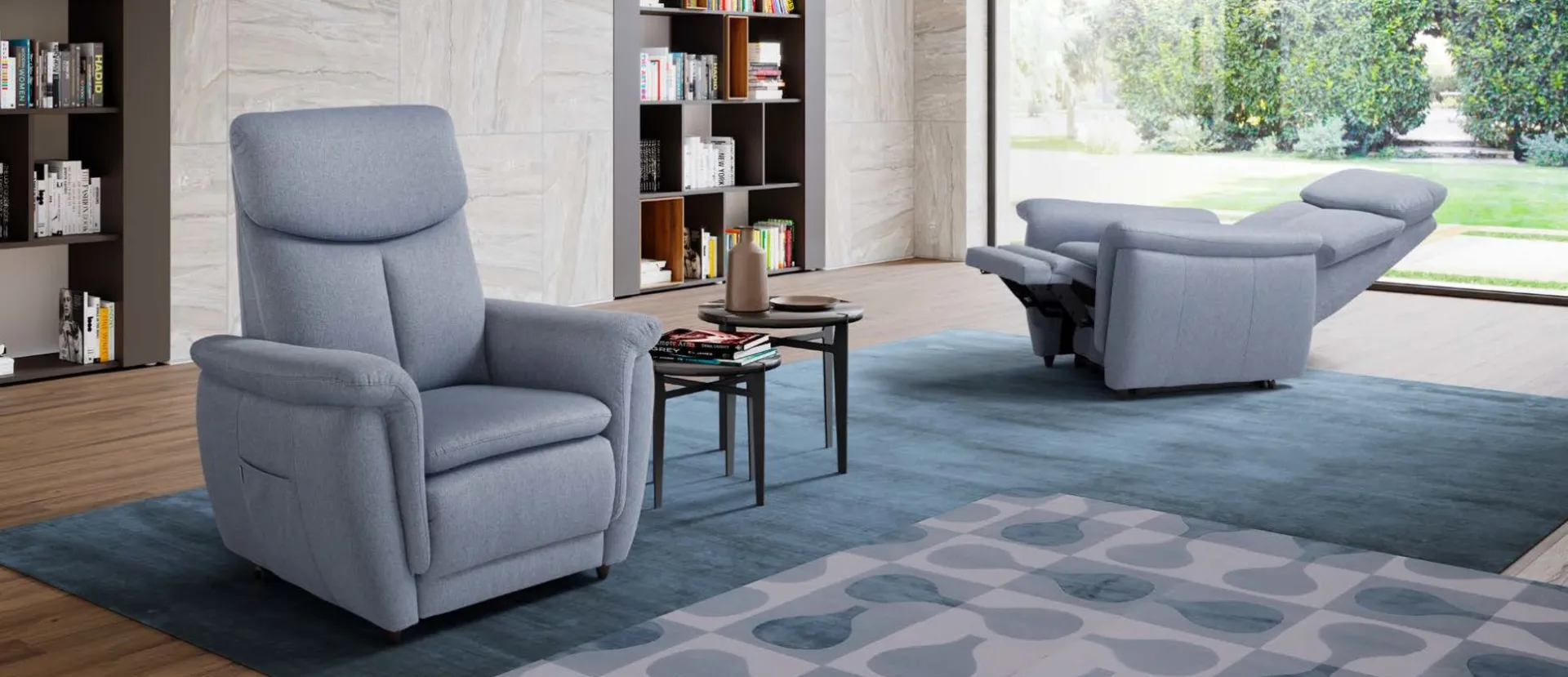 Clicca e scopri di più sulla poltrona relax Fara: è ideale per supportare ogni movimento con facilità; guarda tutte le Poltrone relax in tessuto moderne di Spaziorelax.