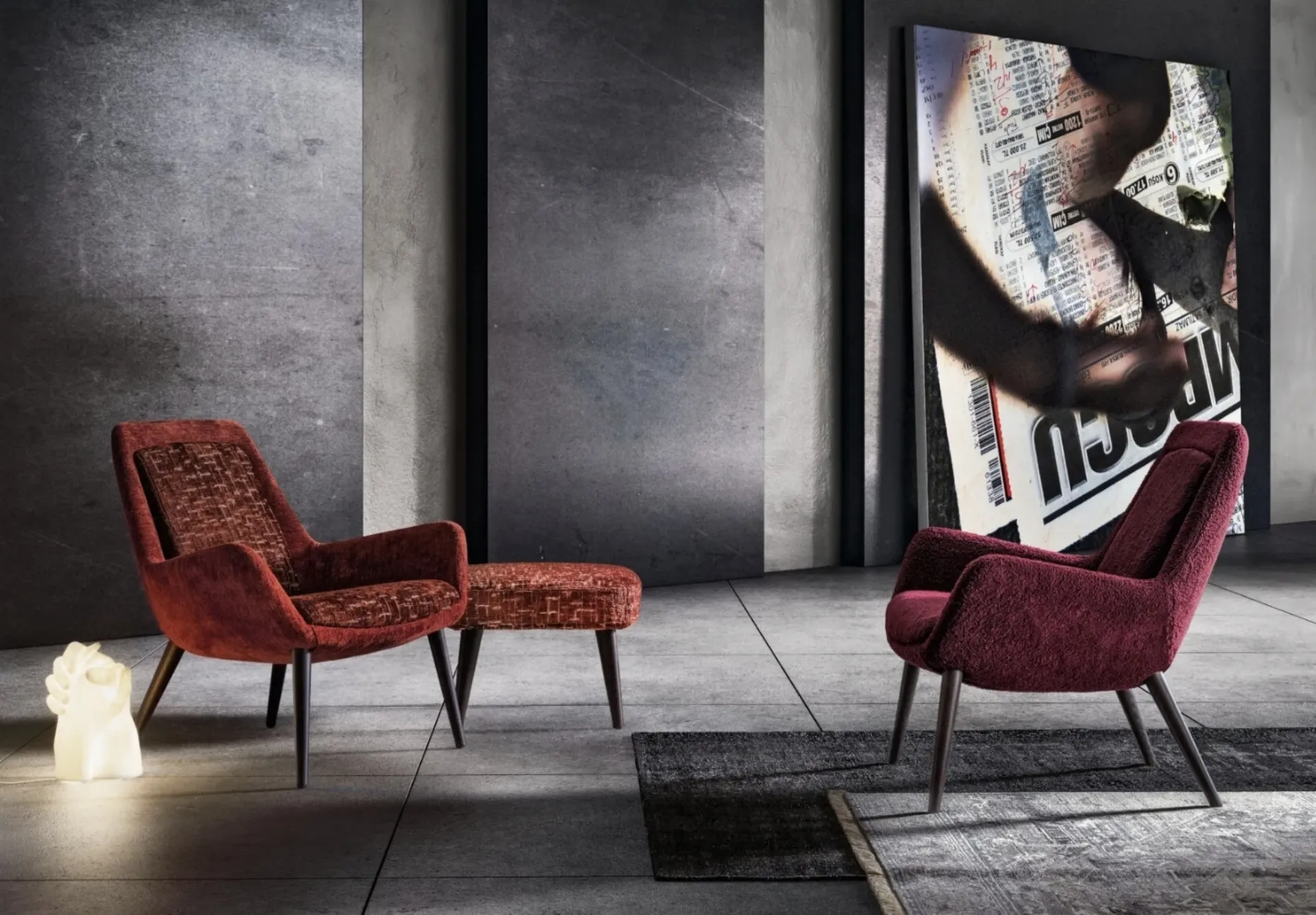 Se vuoi una poltroncina per stanze design, clicca e leggi di più sul modello Tecla in tessuto della firma Samoa.