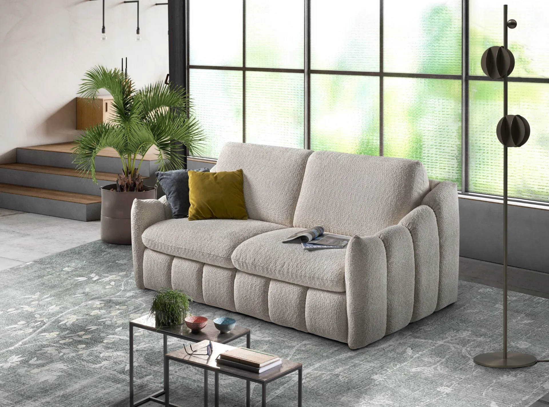Salotti e divani con letto Il Benessere: ecco a te il modello Bon Bon in tessuto per completare il living.