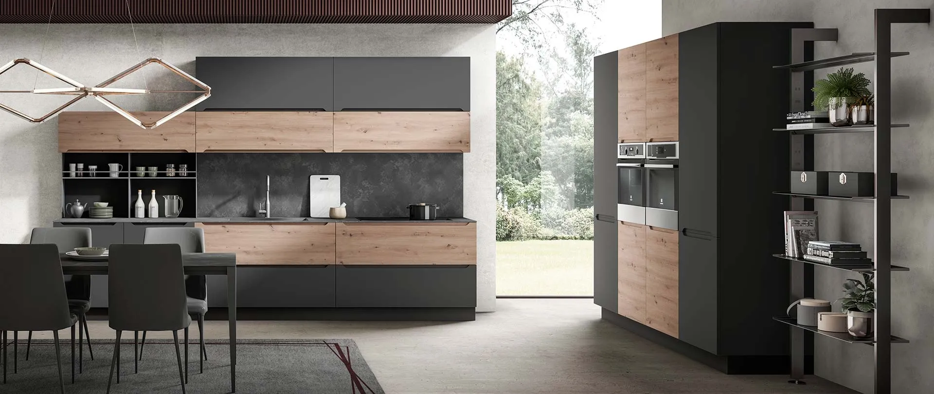 Cucina Moderna Carima Rovere nodato Miele e Grafite opaco di Evo Cucine
