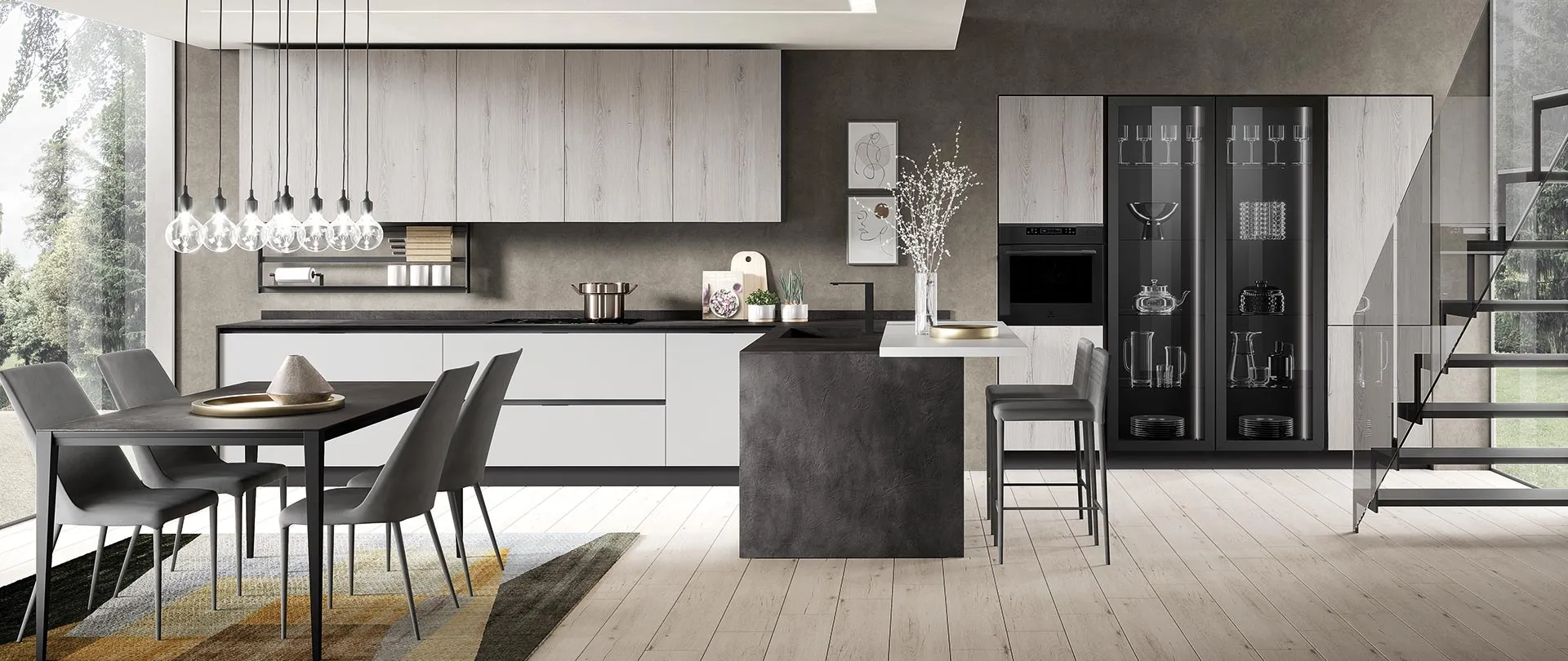 Cucina Moderna Diva Ghiaccio e Rovere Grigio di Evo Cucine