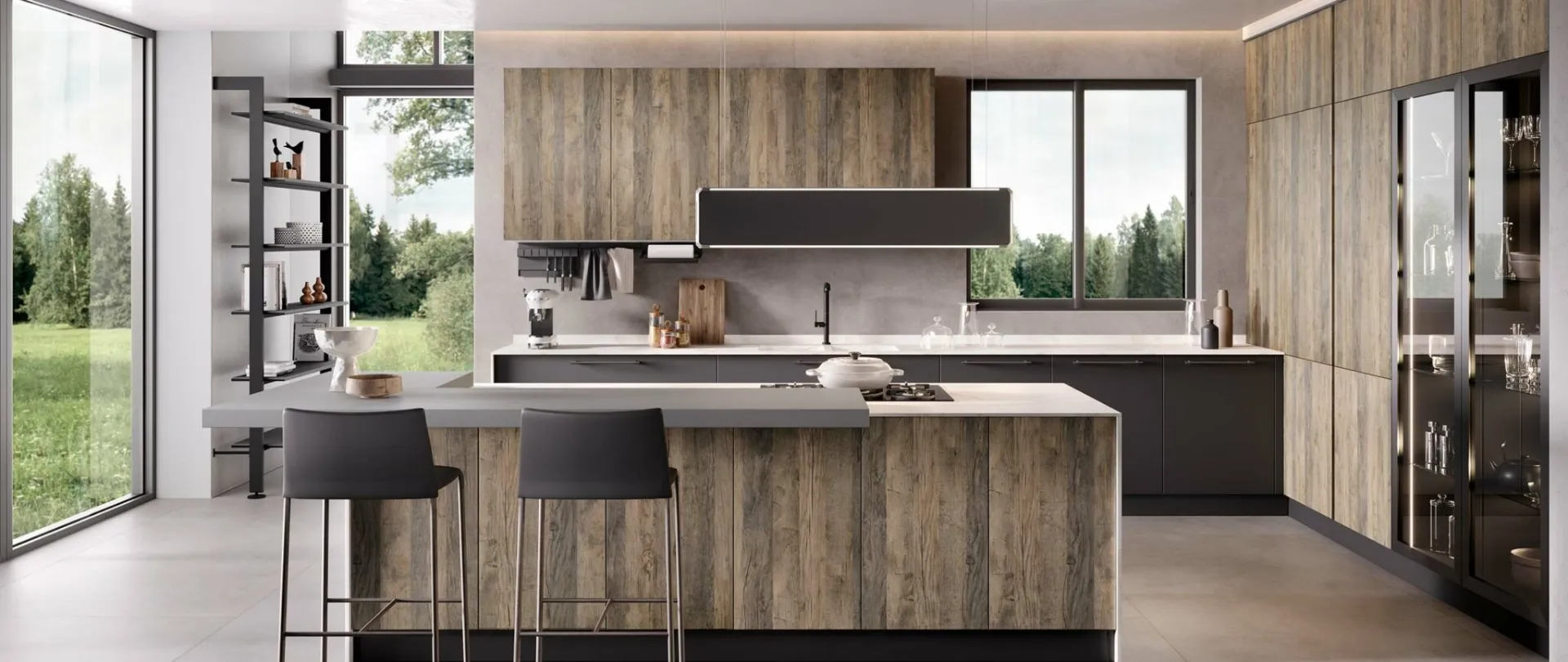 Cucina Moderna Korinna Rovere vintage e Nero opaco di Evo Cucine