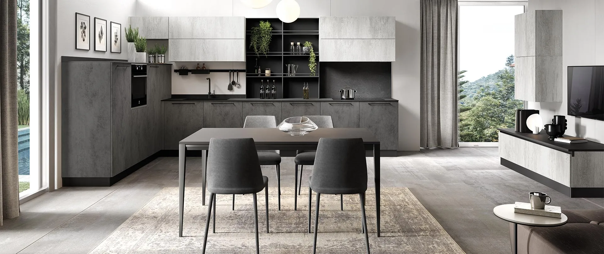 Clicca e scopri di più sulle cucine realizzabili su misura per te ad angolo: ecco il modello Futura Cemento e Pietra Evo Cucine!